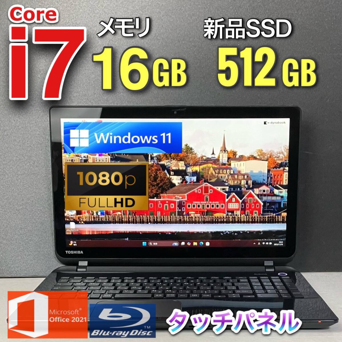 | 【配送商品の中身】 □ノートパソコン本体 (新品SSD、メモリ内蔵済み) □ACアダプタ □延長保証パンフレット 【スペック】 ■メーカー・型番:東芝 T85/NB ブラック ■インストールOS:最新版Windows11Pro 64ビット ■CPU:Core i7-4510U(2コア/4スレッド) ■メモリ:16GB(8GBx2) ■容量:爆速新品SSD512GB ■光学ドライブ:ブルーレイドライブ(BD-RE) ■Office ・Microsoft Office 2021 Professional Plus(!から購入した正規品でプロダクトキー付属しています) ■装備 ●タッチパネル式15.6型ワイド(16:9) FHD TFTカラー Clear SuperView LED液晶 (省電力LEDバックライト) 1920×1080ドット 発色も良く液晶良好★使い勝手がいいオーソドックスなサイズ感です ●無線LAN対応 ●有線LAN対応 ●高速USB3.0ポートx2、2.0x1 ● HDMIポート搭載 モニターに出力して大画面での作業や動画視聴も可能 ●Webカメラ搭載 ●Bluetooth搭載 ■動作確認