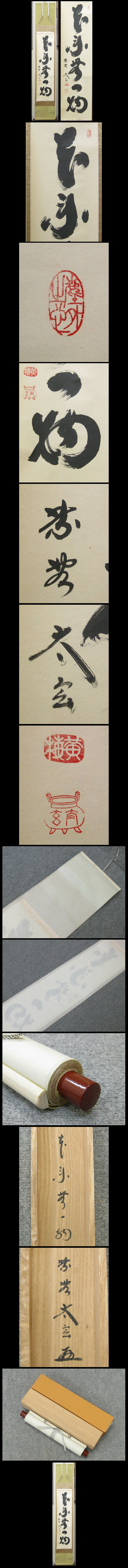【小林太玄】(太玄義透) 昭和13年奉天(今の瀋陽)生。兵庫県の赤穂育ち。 昭和50年大徳寺塔頭黄梅院住職に就任。 豪快な書体は人気が高い。 ★商品サイズ★ ■掛軸 178×30cm ■作品 100×26.5cm ★商品の状態★ 良い状態です。裏側も良い状態です。 時代など詳しくは画像にてよく確認のうえでご検討いただければと思います。 どうぞよろしくお願いいたします。 |