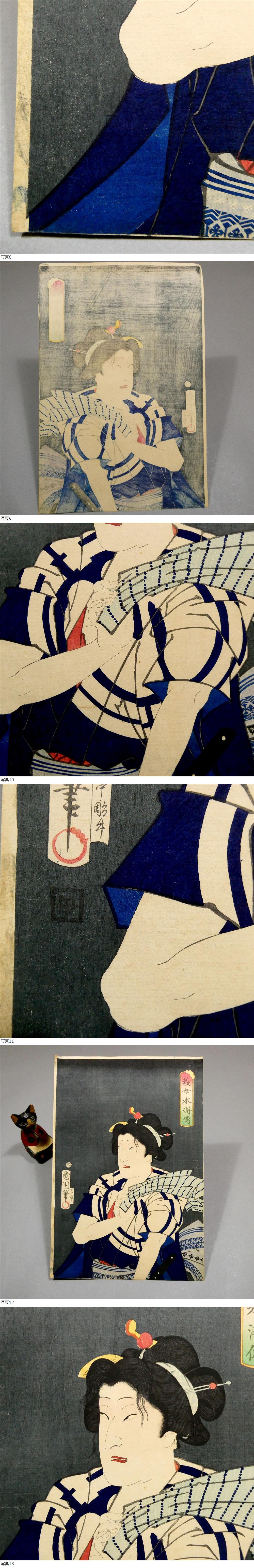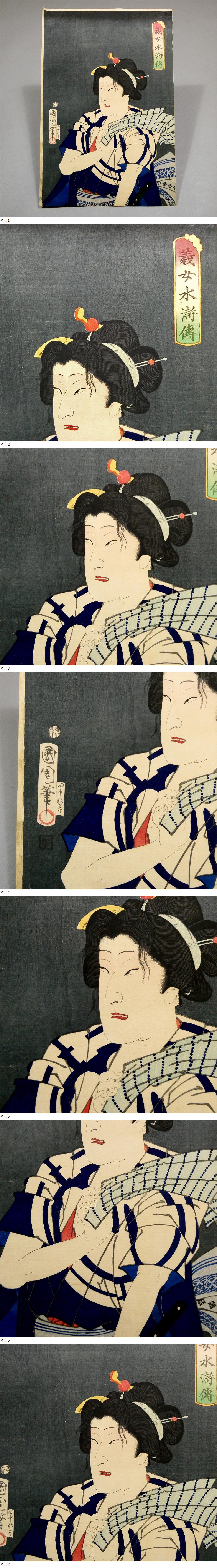 ■ 豊原国周 江戸時代 幕末 木版浮世絵 傑作シリーズ『義女水滸伝』 豪傑の魂を宿した粋な姿 ドラマチックな構成 ■