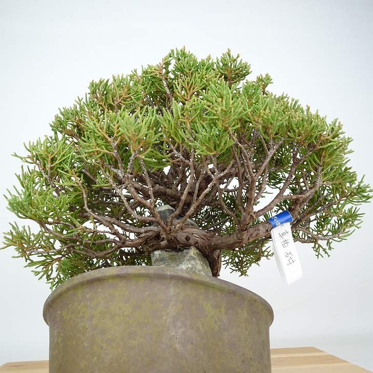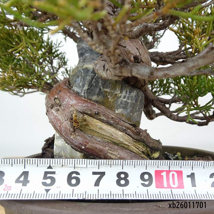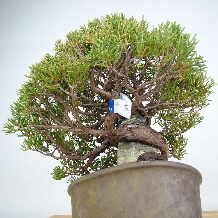 | ■植物ですので撮影時期や季節によって剪定などの手入れにより写真から変化がございます。撮影日をご確認のうえ、ご注文ください。 ■年に一度、冬頃にジン・シャリのお手入れをおこなっています。薬品の関係で黄色く変色しているようにみえる場合がありますが徐々に薄れていくので問題はありません。 【真柏盆栽】 シンパクの1番の特徴と言えば、短く締った紐状の葉と、わずかな水吸いでも生き抜くことができる強靱な幹枝です。自然界では積雪や強風などで押しつぶされ木部が露出し、朽ちて白骨化したものが見られます。枝の一部が白骨化したものを神(ジン)、幹の場合は舎利(シャリ)といいます。 |