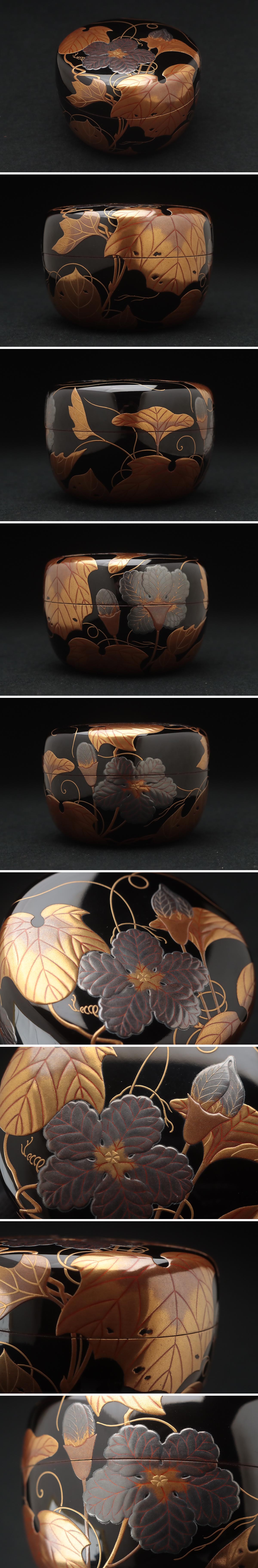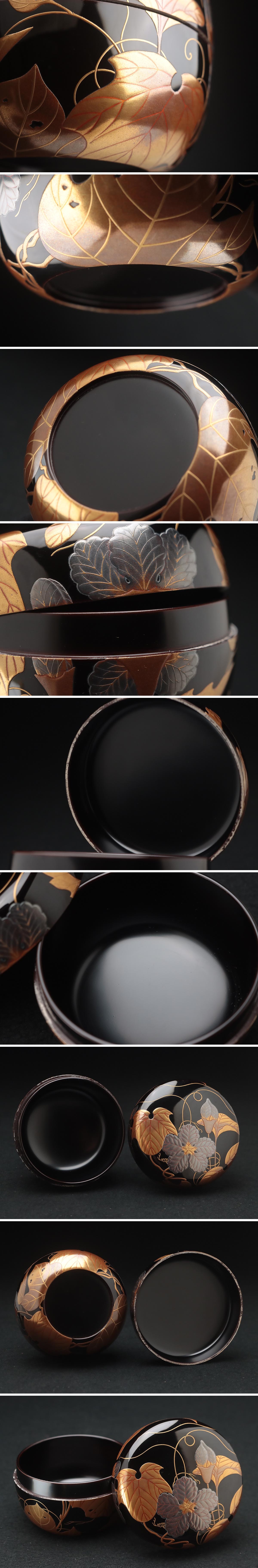 | ◆ 茶道具 夕顔蒔絵平棗・夕顔金銀蒔絵棗 径8cm 茶器 茶具 漆工芸 漆器 伝統工芸 ◆