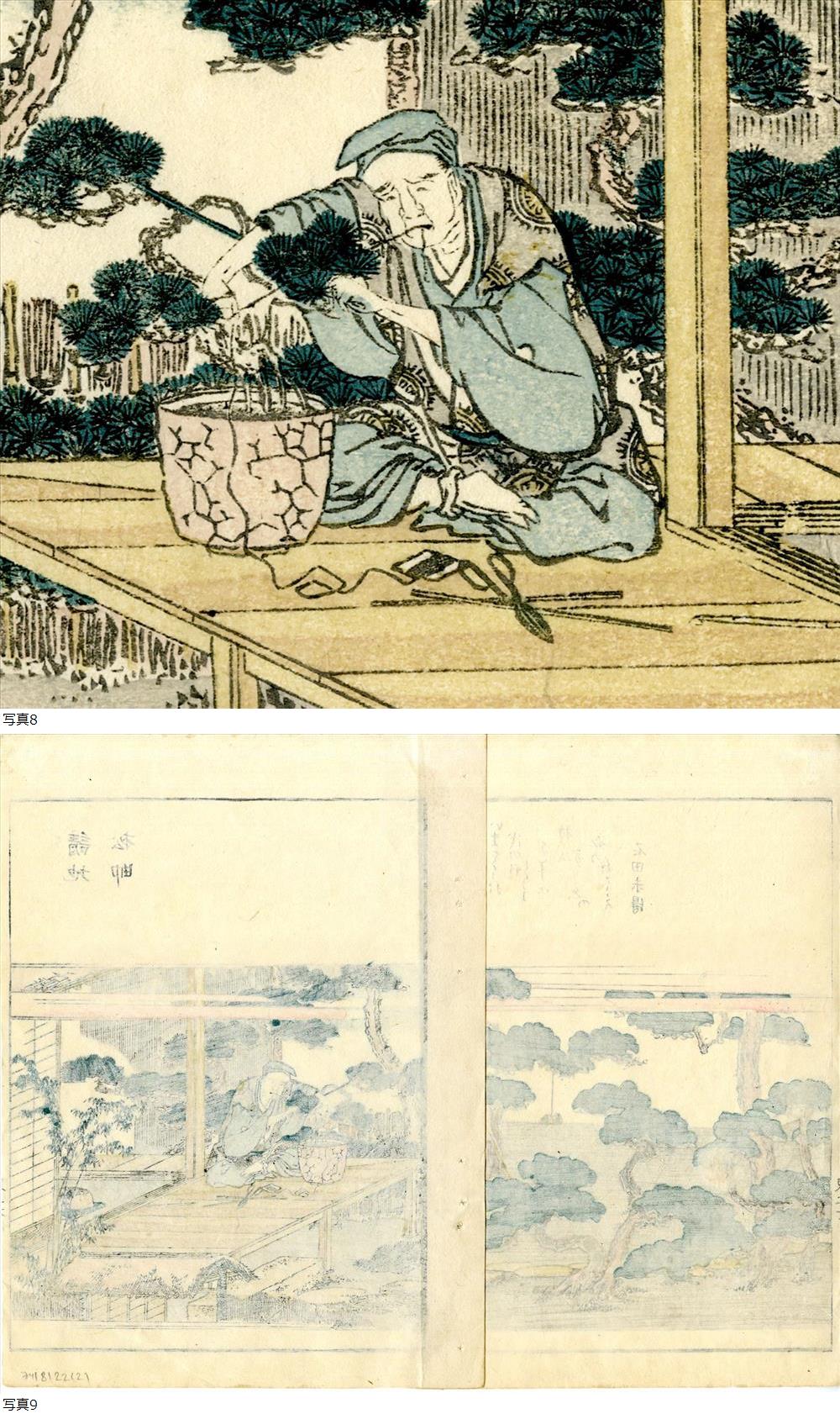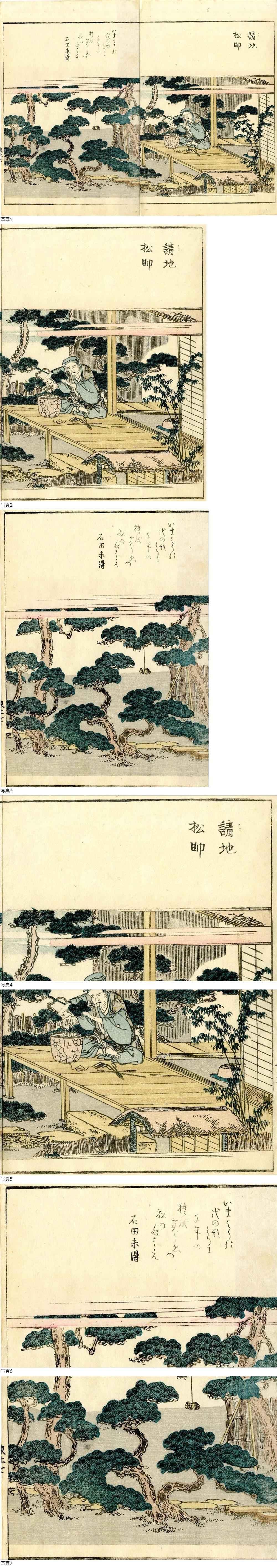 | 北斎 真作 摺物一枚「画本東都遊 請地松師」彩色木版画 双紙本 浮世絵 江戸 |