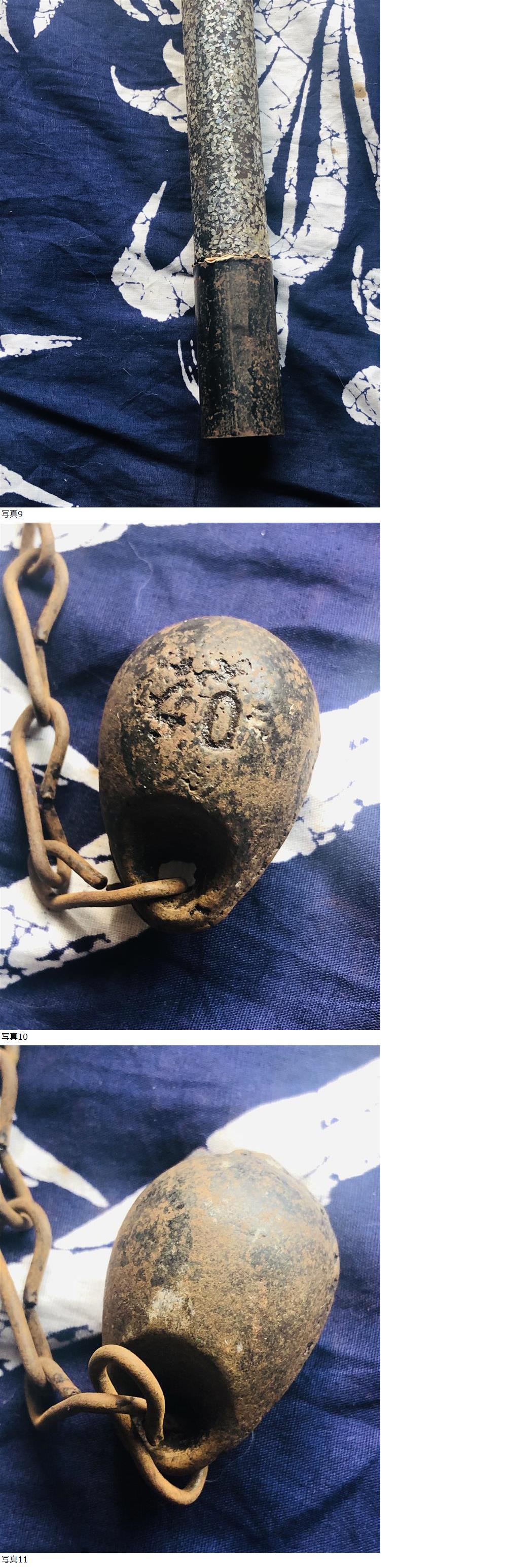 | 【名品高級鉄製鎖鎌全長43cm鎖の長さ約195cm重さ570g!旧家蔵出し品】螺鈿細工時代物/隠し武器/武具/忍者【柳生の里より蔵出し品】売切格安 |