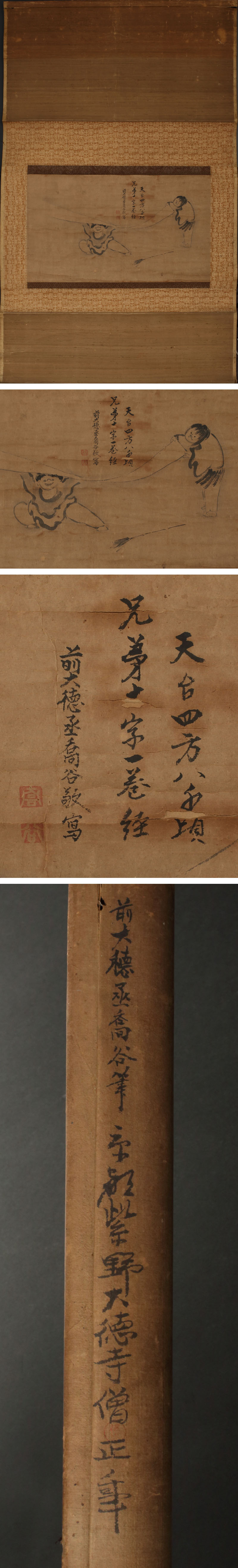 【模写】委託HK◇喬谷宗丞 寒山拾得図自画賛(掛け軸 近世日本画 大徳寺 禅僧 禅林墨蹟 禅画 臨済宗 漢詩人 水墨画 禅語) [浏览原始页面]