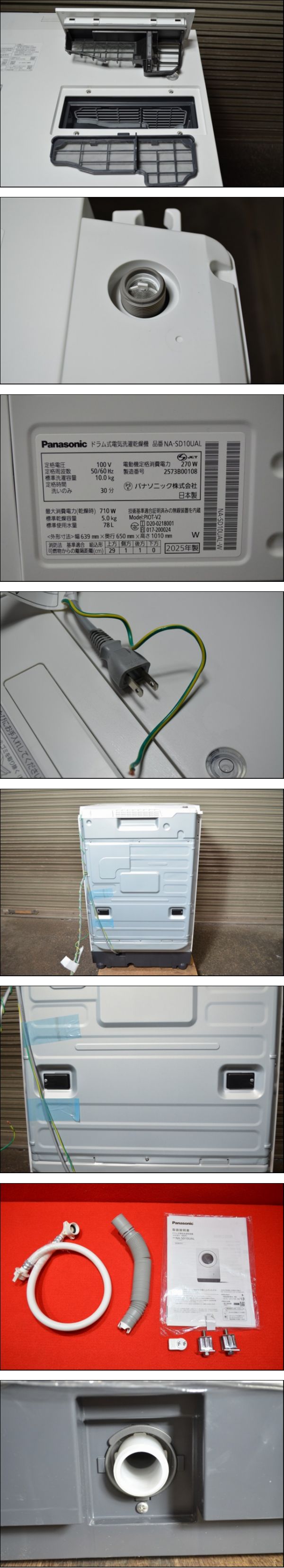 | ■□■□■ ご覧頂き誠にありがとうございます ■□■□■ 美品 Panasonic パナソニック ドラム洗濯機 NA-SD10UA 2025年 10㎏ です。 中古品です。目立ったキズ等もなく綺麗な状態です。 付属品は写真に写っているので全てです。 輸送用ボルトはあります。発送の際はボルトを取り付けて発送します。 その他状態等写真にて要確認ください。 ・本体質量:約65 kg ・洗濯容量:10 kg ・乾燥容量:5 kg ・本体サイズ:幅600 × 高さ960 × 奥行650 mm ・給排水ホース含むサイズ:幅639 × 高さ1010 × 奥行650 mm ・電源 AC 100V 50/60Hz [重量] 65kg [サイズ] 高さ 約960㎜ 幅 約600㎜ 奥行 約650㎜ [梱包時サイズ] 「アートデリバリー Cランク」より配送致します。 ※【配送についてのご注意】をよくご確認下さい。 ※最少の梱包を心掛けておりますが、商品の安全の重要性により、 サイズが変わる事が御座います。予めご了承ください。 ※中古品であること、現状販売であることをご理解いただける方のみ 御入札をお願い致します。 ※個人保管・経年による汚れ、傷等が見られます。 ※当方専門知識がない為、質問にはお答えできない場合が御座います。 ※知識不足によるカテゴリ違いがある場合が御座います。予めご了承くださいませ。 【商品状態の目安】 C S…新品または未使用品 A…中古品 未使用品に近い物(非常に状態の良い物) B…中古品 目立った傷や汚れ無し C…中古品 やや傷や汚れが有り D…中古品 傷や汚れなどが有り使用感の有る物 E…中古品 全体的に状態が悪い物 F…中古品 ジャンク品(状態は写真にてご確認をお願いします) ※最少の梱包を心掛けておりますが、商品の安全の重要性により、サイズが変わる事が御座います。予めご了承ください。 ※画像は現物を撮影しておりますが、照度、遮光、モニターによっては実物と色目が異なって見えることがありますのでご注意ください。 ※写真に写っているものが商品全てとなります、御注意下さい。 【評価について】 基本的に当方から評価は致しません。 ※評価ご希望の方は、「受け取り連絡」を頂いた後、取引ナビにてご連絡ください。 | ||