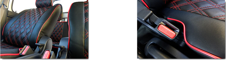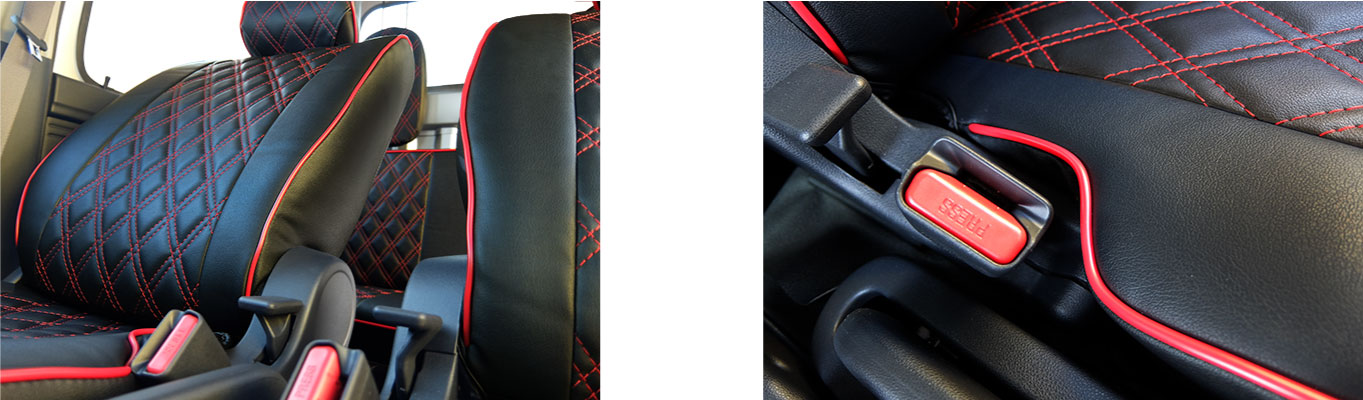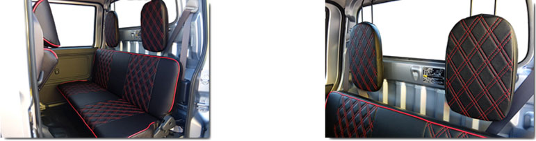 | その他 | *シート柄は多様にございます。 ※カバー装着による生地の摩擦の為、2列目シート格納がし辛くなります ※一部改良前はヘッドレストの形状が違う為、適合外となります。 ハイゼットカーゴ 一部改良前後の見分け方をご覧ください。 |