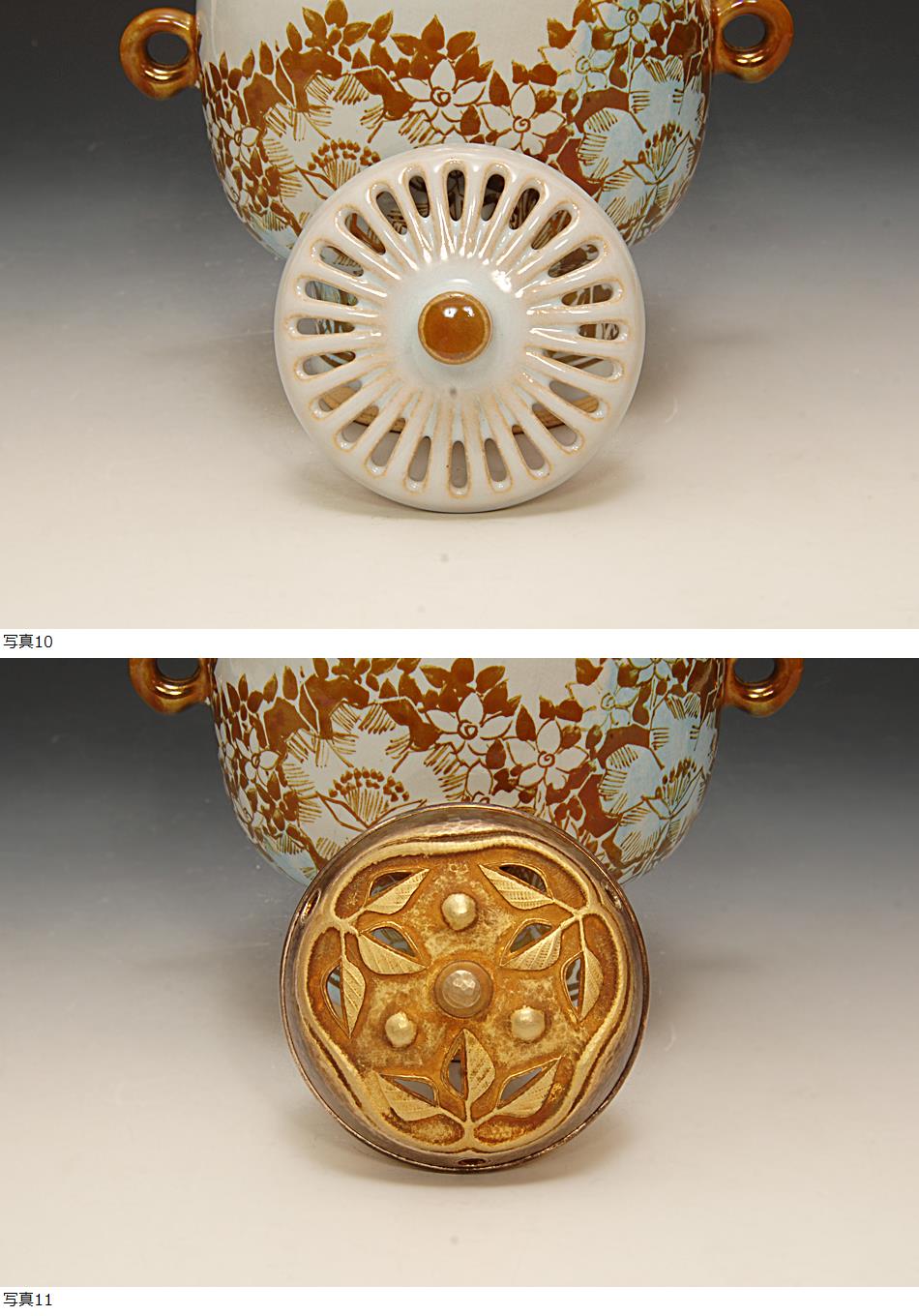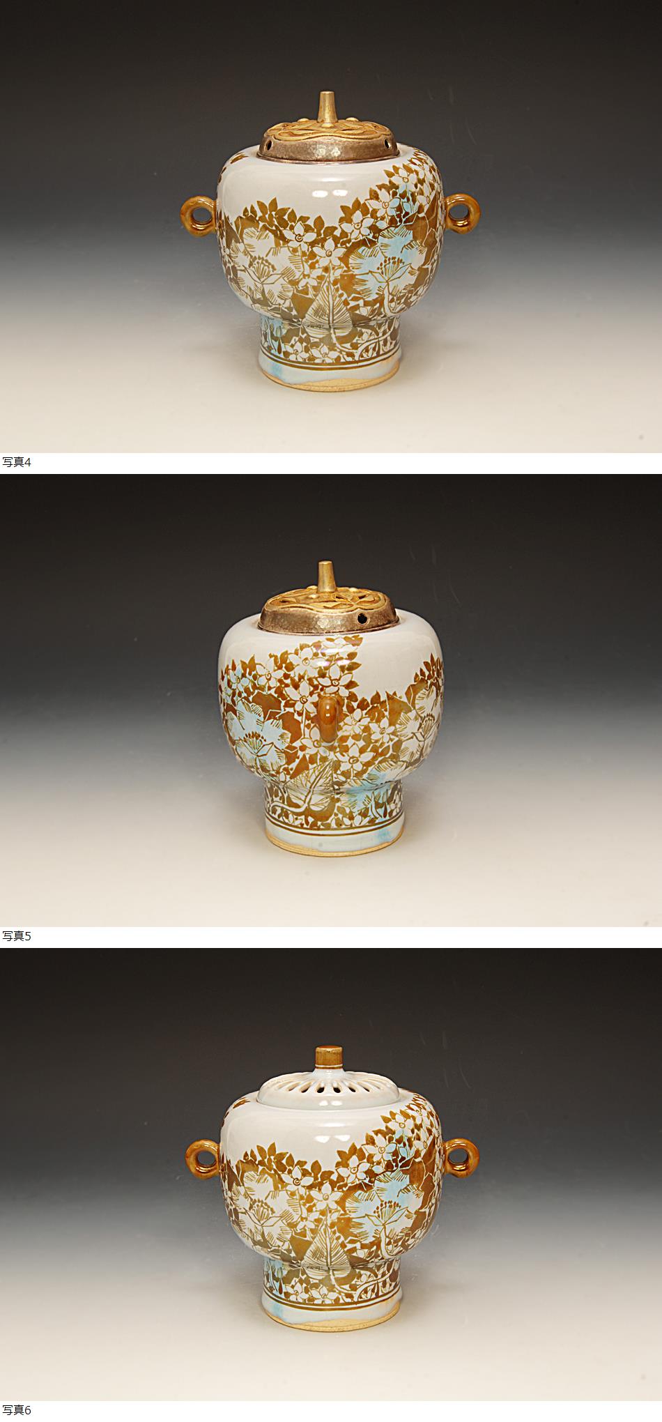 晩年に造られた青釉も見られる個展用に造られた丁重繊細な絵付けと神秘的な光の見られる最上の上がりの変え火屋付きの作品です