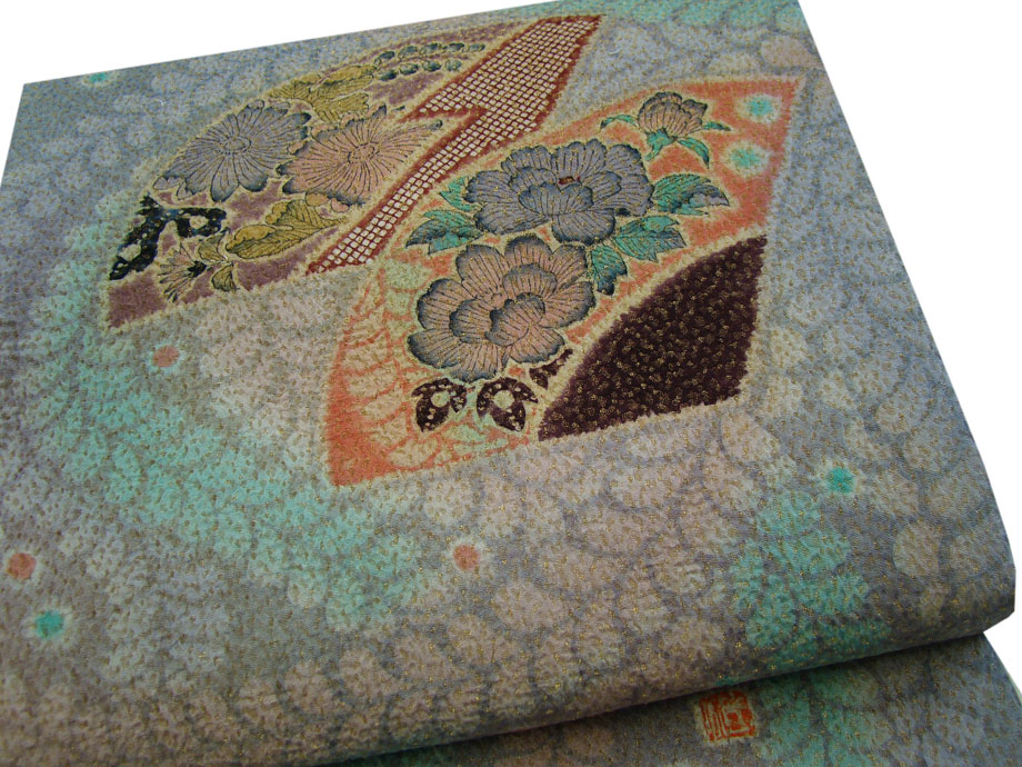 新品縮緬地 辻が花 なごや帯 (正絹) 未使用 <Ns1215> |
