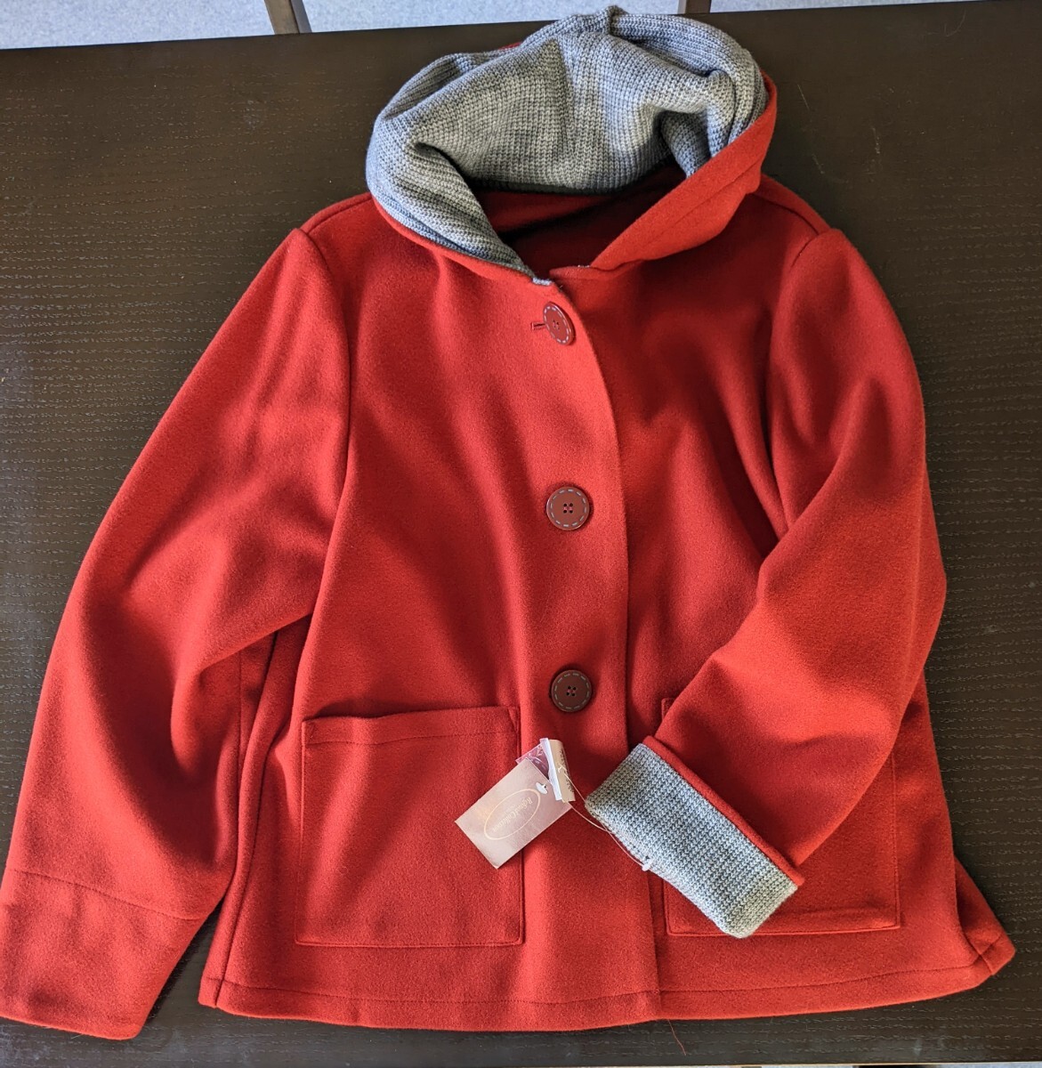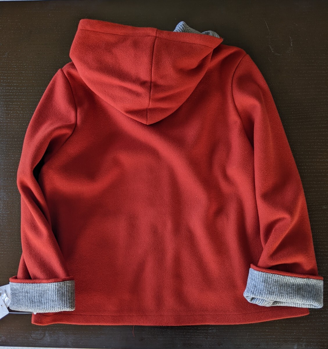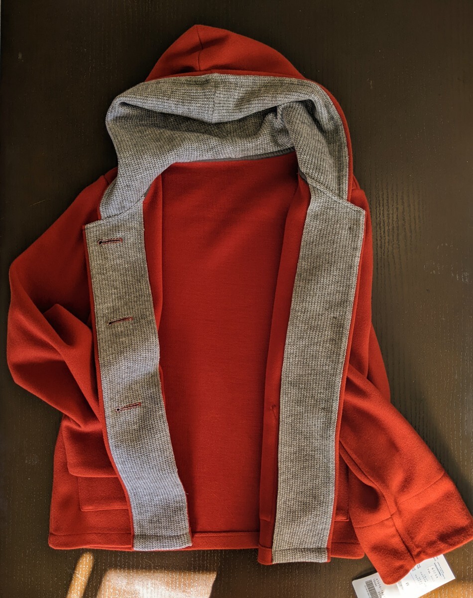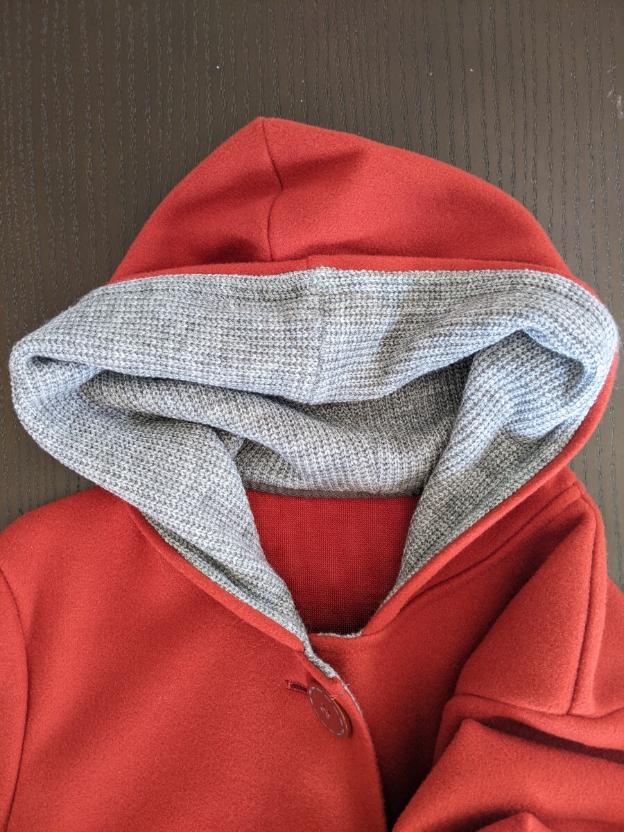 2年ほど前に衝動買いしたジャケットです。着る機会がなく買ったあとクローゼットに吊るしてありました。赤ずきんちゃんみたいで可愛いですよ。生地はフェルトのような感じで軽く暖かいです。前立て、フードの裏側、袖を折った部分のグレーのリブ編みがアクセントになっています。ボタンは刺繍を施したように見える大きなボタンです。色味を出すのに苦労しましたが、画像3が一番近いと思います。裏地がないので風を通しそうですが、生地の目が詰まっているので、多少の風は大丈夫だと思います。サイズはMと表示されているのですが、144cm40kgの私が試着したとき少しゆったり、という感じだったので、Sサイズに近いのではないかと思います。なるべく小さく折りたたんで発送いたします。折り目等つくかもしれませんがご了承下さい。当方猫を飼っております。配送方法についての注意書きがありますので、プロフィールもご確認下さい。何かわからないこと等ありましたら、お気軽にご質問下さい。ノークレームノーリターンでお願いいたします。| 出价者 | 信用 | 价格 | 时间 |