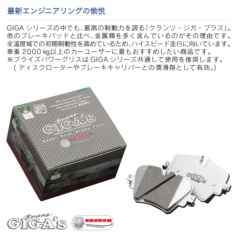 【関連ワード】クランツ KRANZ ジガ GIGA's 国産 低ダスト ブレーキ パッド AUDI アウディ