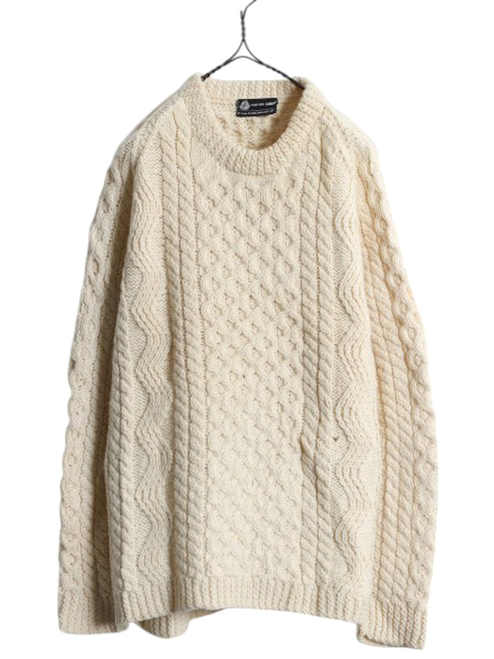| 商品名 | フィッシャーマン ウール ニット セーター メンズ L 程/ 古着 アラン ケーブル ローゲージ 無地 クルーネック ナチュラル ヘビーウェイト |