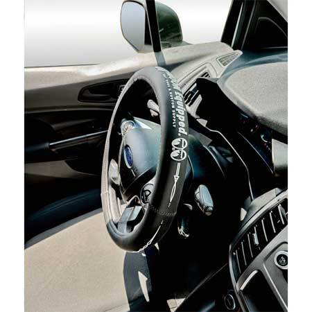 MOON Equippedロゴとピンストライプがデザインされた硬派なステアリングカバー♪