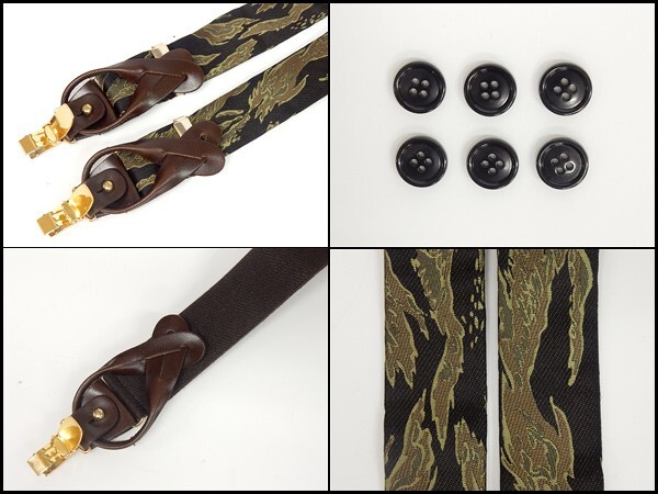 | ベルト部分:迷彩柄/カモフラージュ (タイガーストライプ) 革部分:チョコ茶 「普通サイズ」 身長180cm(普通体)までの方用 | |
