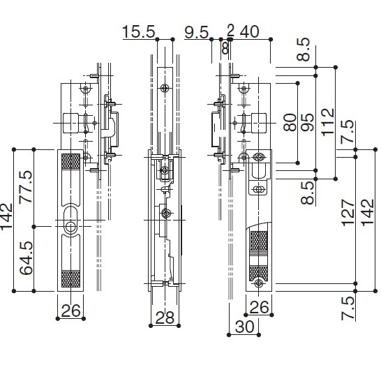 梱包内容 外部シリンダー錠1式、内部サムターン錠1式、子鍵3本