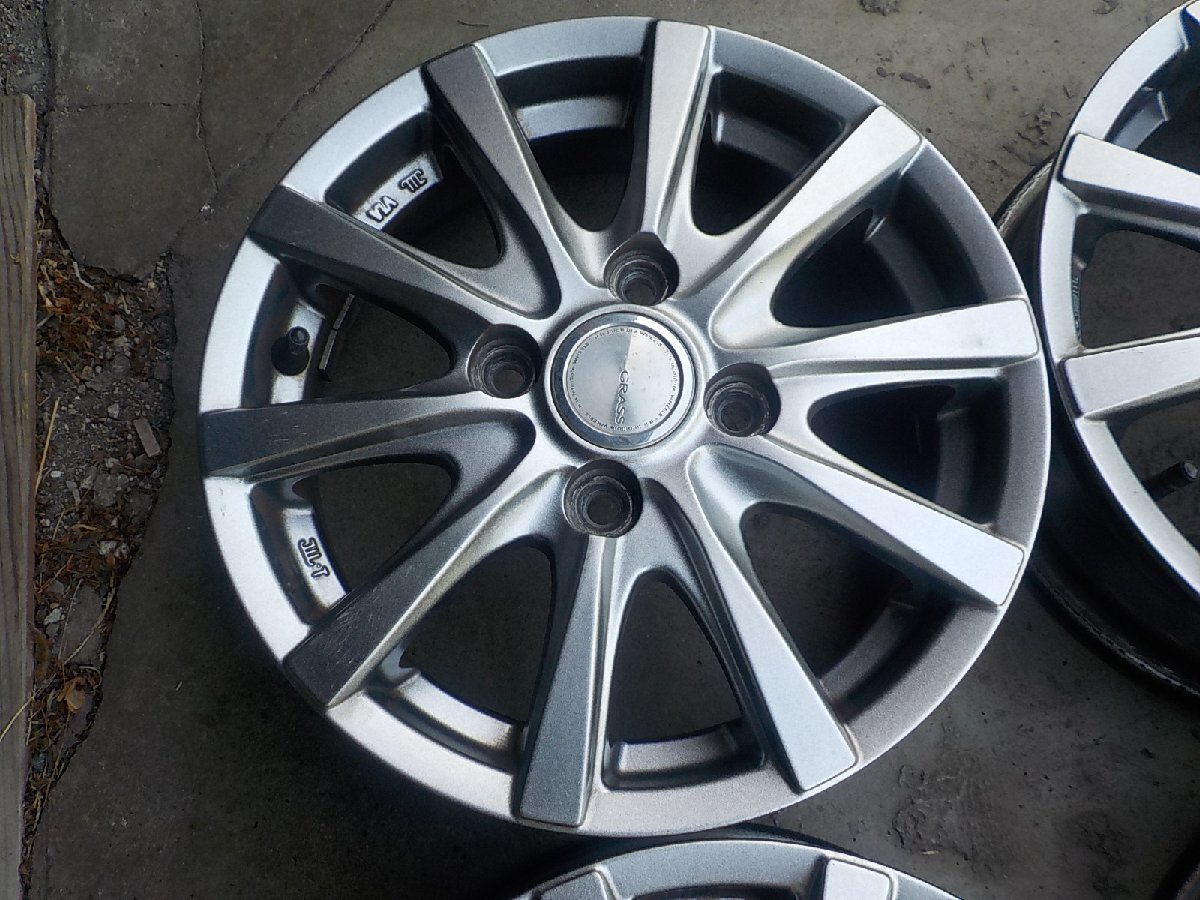| ■業者宛送料安 国産 軽トラ 軽バン ハイゼット バモス GRASS13インチアルミホイール4本セット 4.00B+42 100/4■京都発 ★ 軽自動車 軽トラ 軽バン アルト ミラ ハイゼット タント など ★ 軽自動車13インチGRASSアルミホイール 4.00B -13 インセット42 PCD100 4穴 傷少しです24112003 送料は160サイズ2個口金額となります 業者宛の送料を選択されて送り先住所が個人宅の場合は 西濃運輸営業所止か別途追加送料が発生いたしますのでご注意ください 個人宅発送は代引き不可