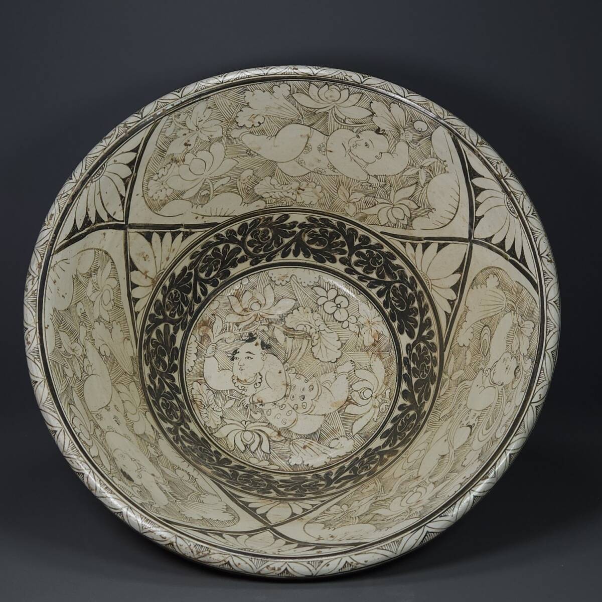 中国磁器 陶芸 磁器『宋代磁州窯童子図大盆です』施釉陶 古代工芸品 陶芸 精美彫 置物 收藏品 | |||