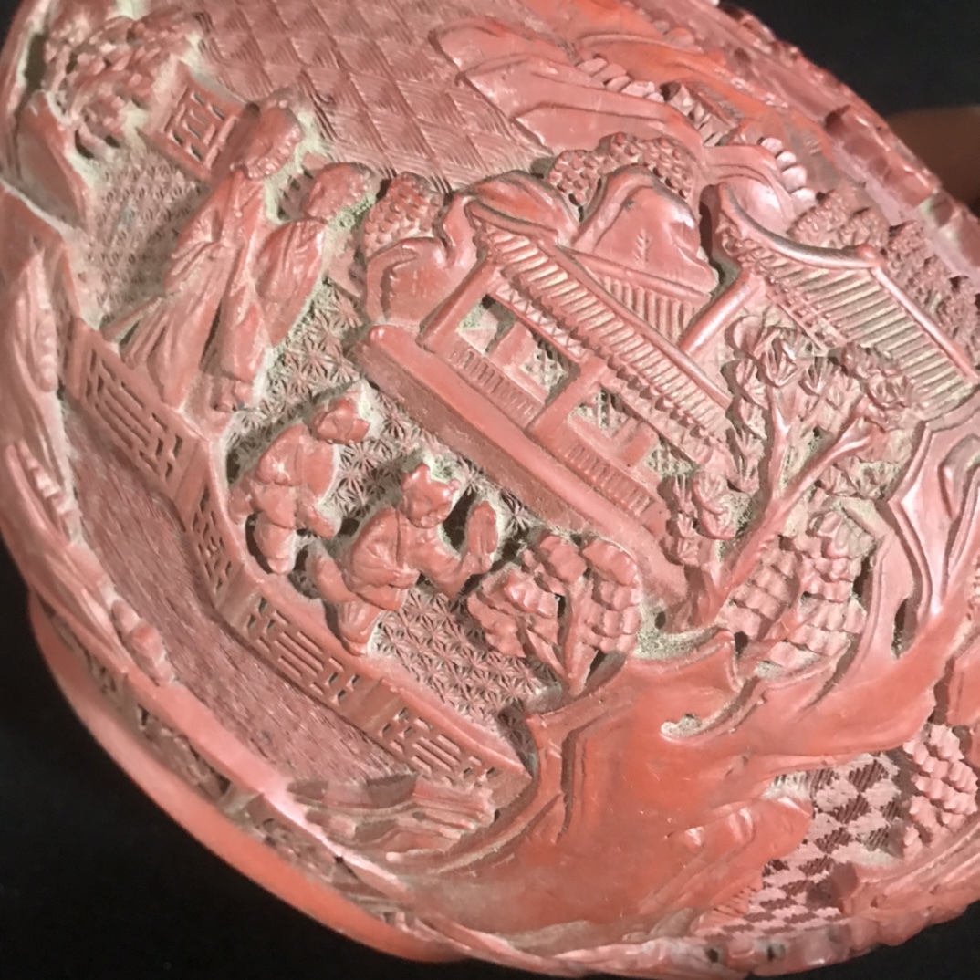説明 | 『大清乾隆年制』透明紅漆器山水人物故事水洗直径46cm高さ34cm口径12cm重さ1777 gこの品は胎布を塗り、洗斂口、弧腹、平足、外紅漆、底、洗内黒漆を塗ります。口に沿って枝の花のパターンを飾り、腹部飾り山水の人物の物語図、人物の描写伝神、亭台楼閣は、レイヤー、繊細な細工、整器細工は飽きもせず、きちんとした、繁雑で精巧な、荘重で優雅な、優美で寛大な形、非熟練の職人です。 |