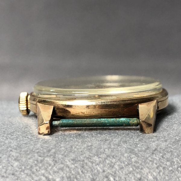 ▲ケースとベルトのつなぎ目、ラグ棒は緑青のような変色がございます。▲