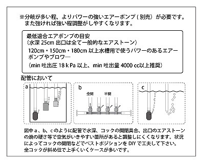 | 商品名:エアー連結コック6方 アクアリウムのエアレーション時に配管出来る多分岐コックです。 内径4mmチューブ用の連結コックです。 各コックをひねって流量調整可能です。 サイドにあるゴムキャップを取り外し交換が可能です。 ■セット内容 ・エアー連結コック6方x1個 ・エアーチューブ5m(ブラック)x1袋 ■注意点 分岐が多いほどよりパワーの強いエアーポンプ(別売り)が必要です。 また強いほど調整がしやすくなります。 |