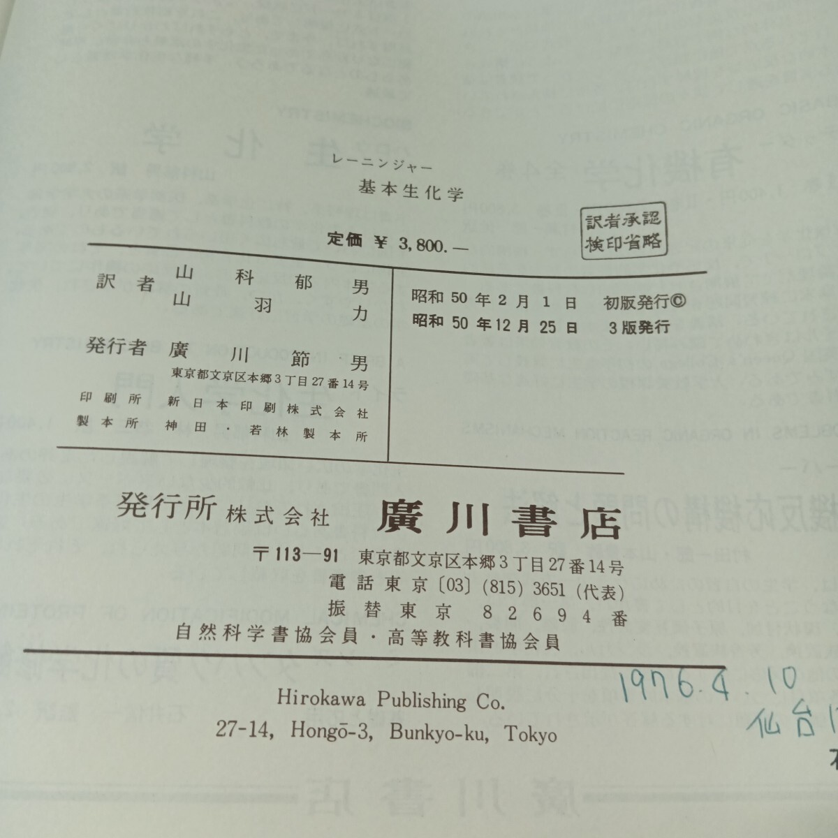 Jd-184/レーニンジャー 基本生化学 山科郁男・山羽 力 共訳 東京 廣川書店 発行 昭和50年12月 発行/L6/70822 [浏览原始页面]