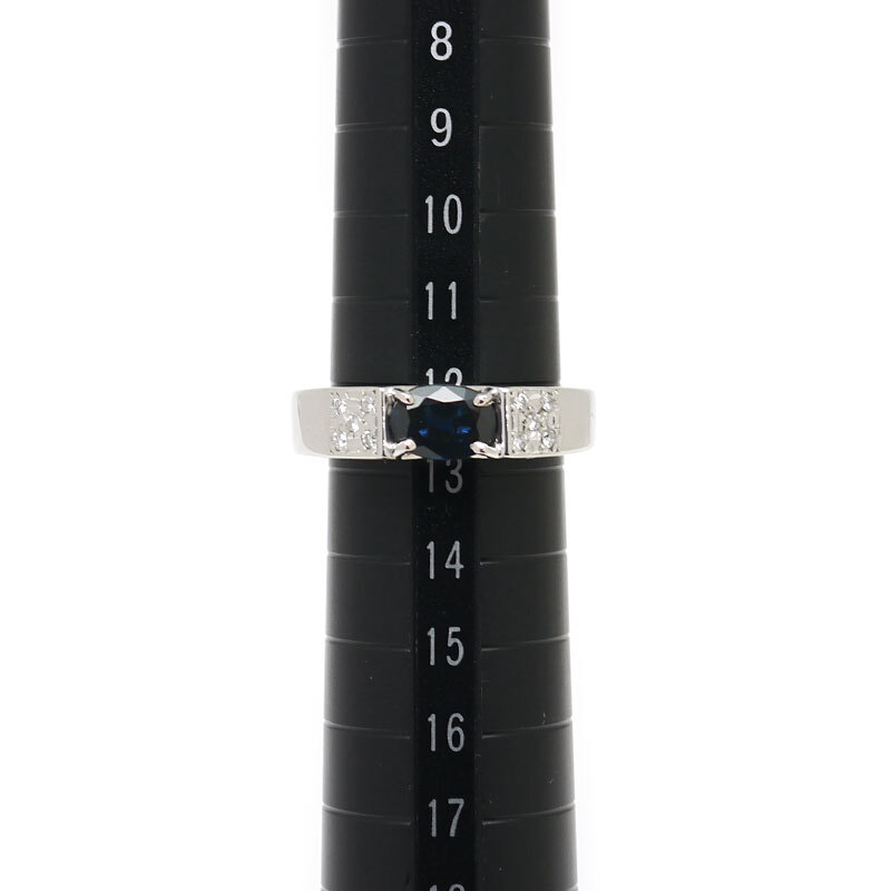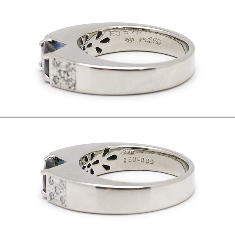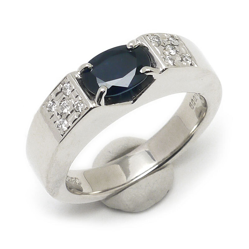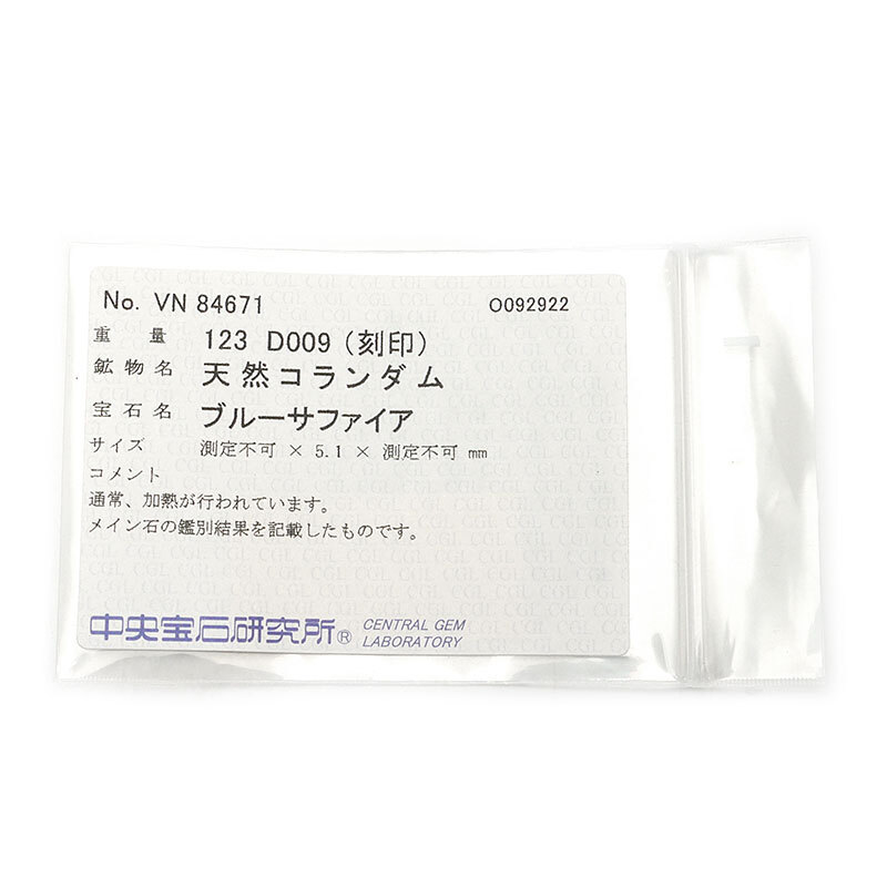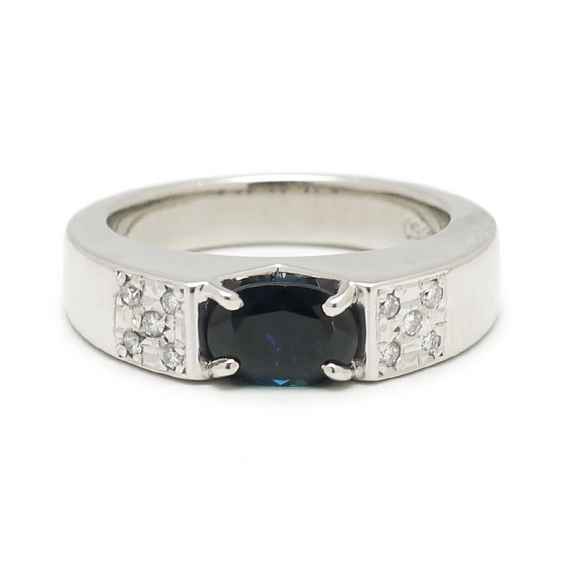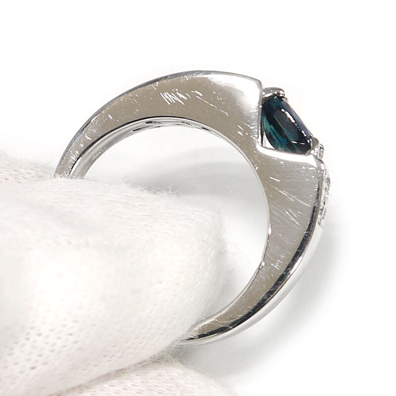 【中石・脇石】サファイアのフチにごく僅かな欠け有り(10倍ルーペ使用時)。緑がかった深い色合いです。