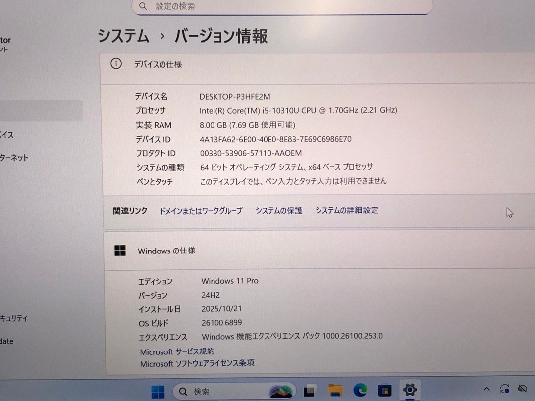 CPU | Intel(R) Core(TM) i5-10310U CPU @ 1.70GHz | 光学式ドライブ | なし |