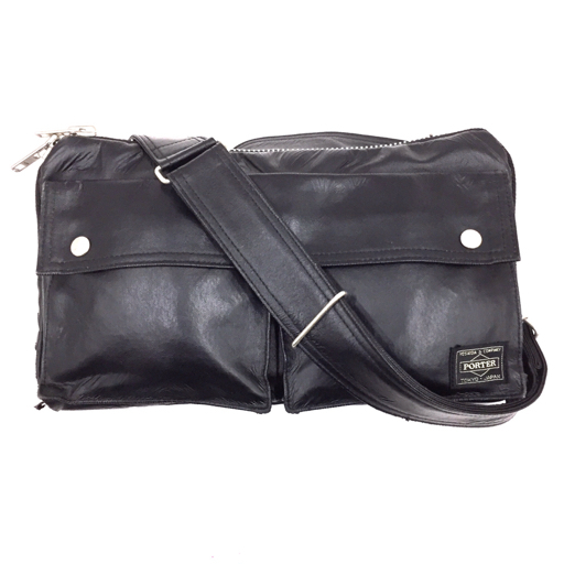 | 吉田カバン ポーター 斜め掛け ショルダーバッグ 黒 ブラック メンズ シルバーカラー金具 PORTER |
