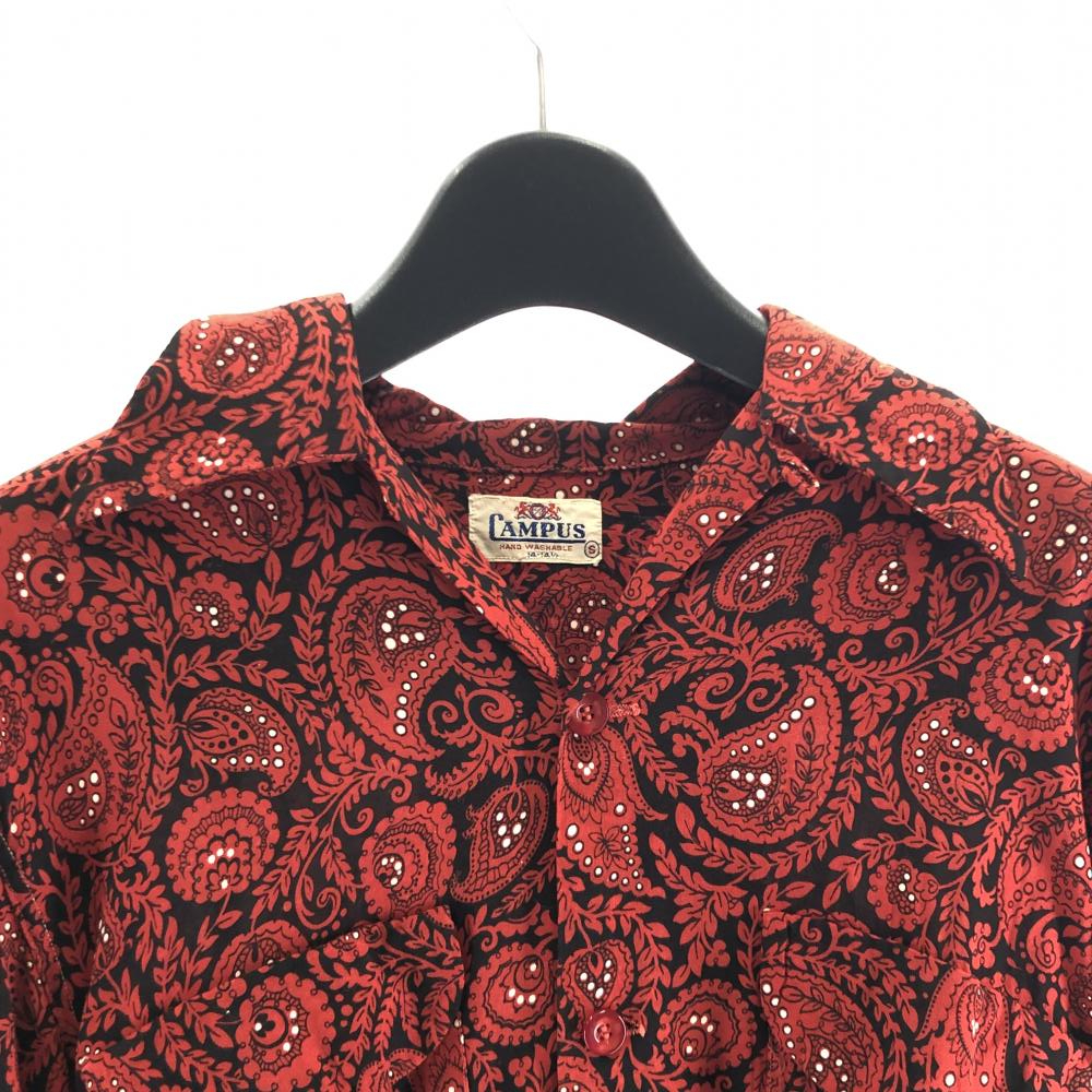 | 209999098478)50s CAMPUS 花 ペイズリー柄シャツ サイズS レッド ブラック |