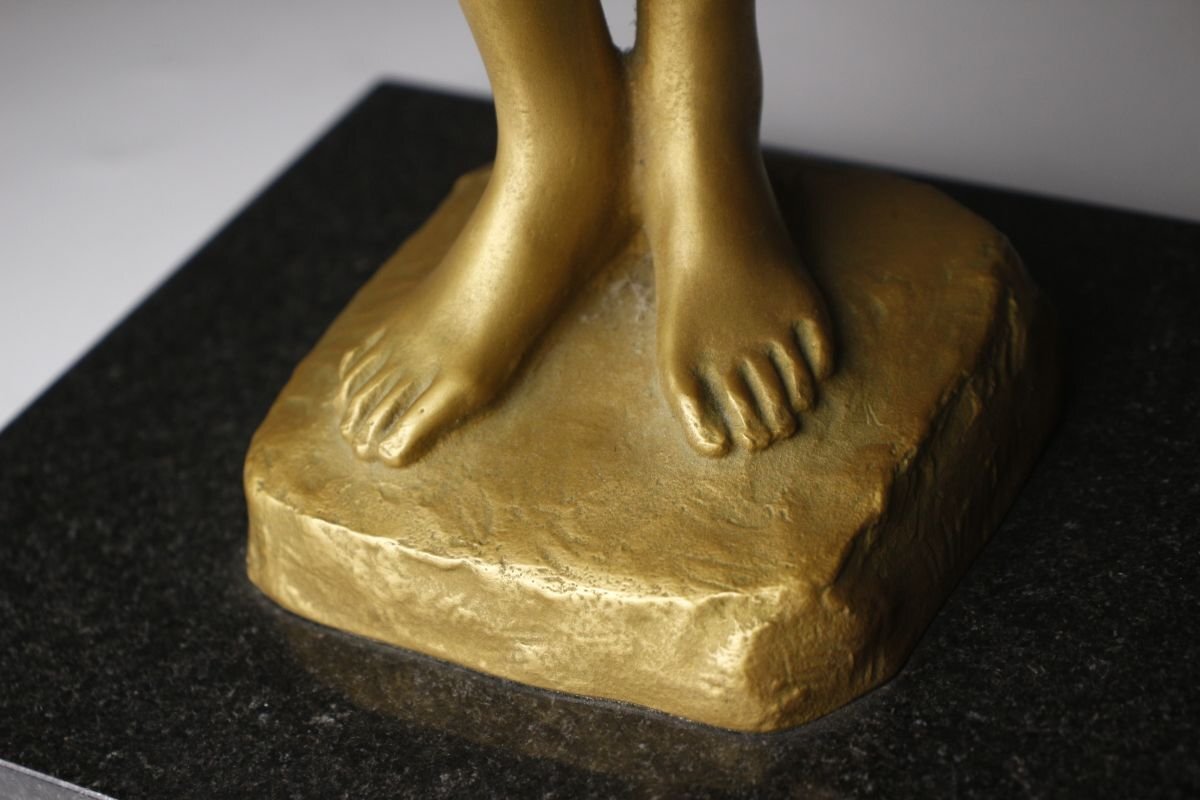 [.OT]25.4 250417K09* * * 商品詳細 * * * ここでしか出逢うことのできない唯一の美をご紹介させて頂きます。 眩しい金色に包まれた姿が豪華なブロンズ像、「風の色」のご紹介です。 そよぐ布の質感や、帽子を押さえるしぐさ等風を感じさせる柔らかな表現がなされています。 女性ならではの柔和な肌の質感も良く再現されており、 作者の高い表現力と造形力を感じると共に作品に込められた情感も伝わって来るようです。 一瞬の美しさを切り取った、魅力あふれる作品です。 この機会に是非お手元にてご堪能下さい。 作家略歴 1935年 愛知県に誕生 1975年 前年に続き日展で特選を受賞 1977年 愛知県芸術文化選奨文化賞を受賞 1989年 第21回日展にて彫刻「風香」が内閣総理大臣賞を受賞 1992年 平成3年度日本芸術院賞を受賞 1993年 第46回中日文化賞を受賞 ■商品内容/ブロンズ像、図録 ■サイズ/横19㎝×高51㎝×奥行15㎝ 重量7.6kg ■状態/スレ、小キズ、図録に傷みがございます。 ※写真にてご確認、ご了承の上ご入札下さい。