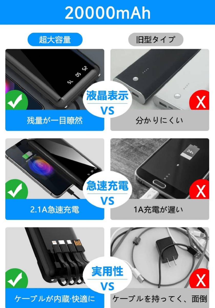 モバイルバッテリー 大容量 20000mAh 急速充電 3台同時充電 電熱ベスト対応 LEDライト付き LED残量表示 PSE認証済 低電流モード搭載USB C 小型 モバイル バッテリー 携帯充電器 ストラップ付き スマホスタンド機能 防塵 指紋防止 モバイルばってりー アウトドア/防災/緊急用などの必携品 iPhone/ Samsung Galaxy Xiaomi OPPO Sony Xperia iPad など各種対応(ブラック)| 出价者 | 信用 | 价格 | 时间 |