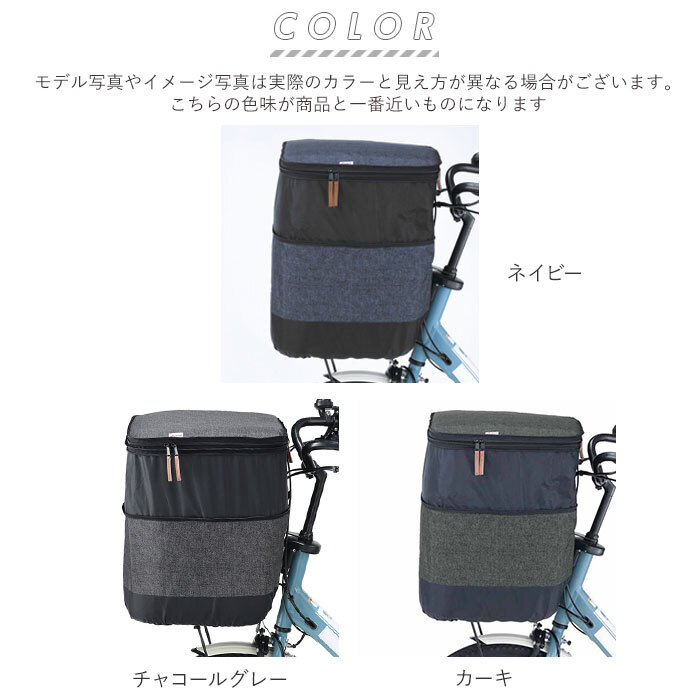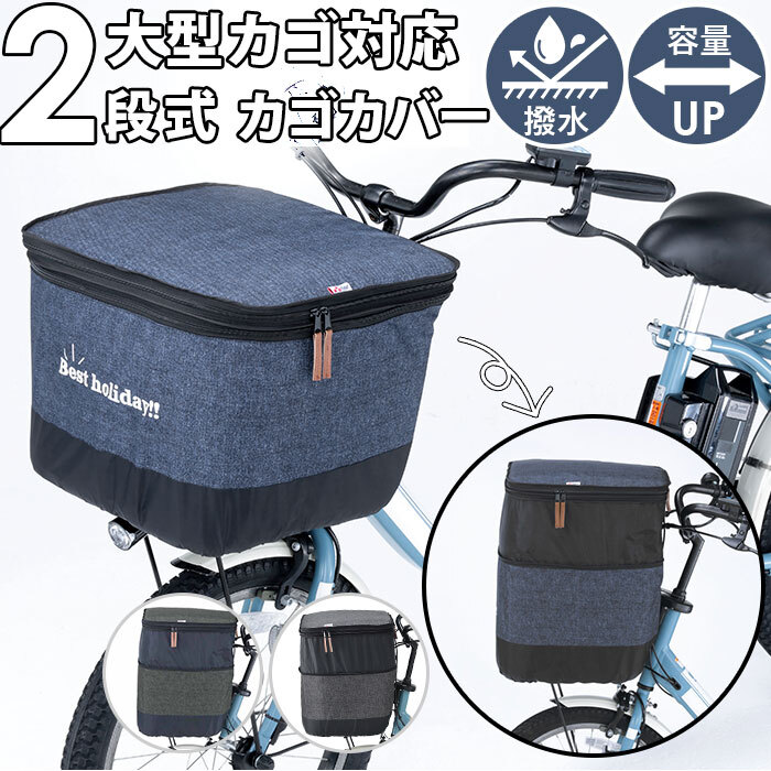 | 商品説明 | ・・自転車での通勤時や、お子様の送り迎えの時にも大活躍!大切な荷物を雨やひったくりから守る、自転車用2段式デニム調前カゴカバー。 ・荷物が少ないときはすっきり!多いときにはたっぷり収納!その日の荷物の量に合わせてファスナーを開放し、2段式に容量アップ。 ・電動アシスト車など、大型の前カゴにも対応するワイドサイズ。(※カゴ対応サイズ・・・横幅:約40cm×奥行:約32.5cm×高さ:約30cmの前カゴに装着可能。細かいメッシュタイプのカゴには取り付けできません。) ・カバー背面のゴムと、裾のドローコードで、カゴにしっかりとフィット。 ・スタイリッシュなデニム調生地には、水滴をしっかり弾く厚手のはっ水加工生地を採用。突然雨に降られた時も荷物が雨に濡れるのを防ぎ、帰宅後にタオルでサッと拭くだけでお手入れも簡単! ・カバーの開口部はダブルファスナーでしっかりと閉じることができるので、ひったくり防止にも役立つ!(※ひったり抑止には効果がありますが、防犯上絶対ではありません。貴重品の管理はお客様ご自身で行ってください。) ・ファスナーは前開き・後ろ開き、どちらからでも開閉できる両開きタイプで使い勝手も抜群。 ・フロントの「Best Holiday!!」のロゴがデザインのワンポイント!晴れの日も雨の日も、自転車でのお出掛けが快適! |