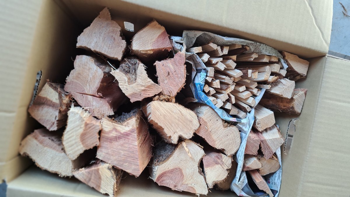 針葉樹で、火力は広葉樹より劣りますが、良く燃えますし、軽量なので多く箱詰め出来ます。