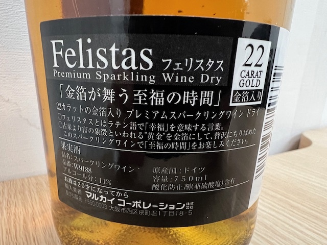 | 長「21806」フェリスタス プレミアム スパークリング ワイン 22カラット金箔入り 750ml 11% | |