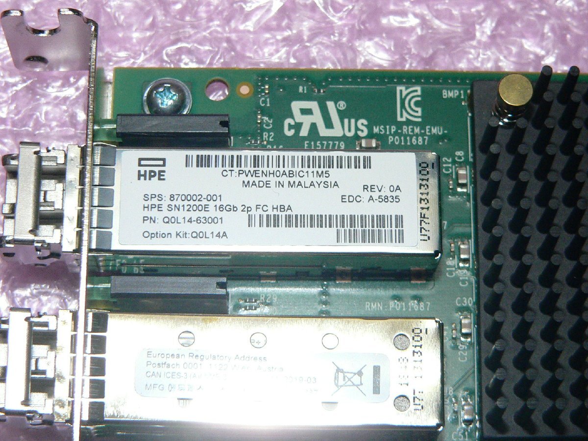 | 商品名 | HP 870002-001 16GB デュアル ポート FC HBA SN1200E Low Profile |