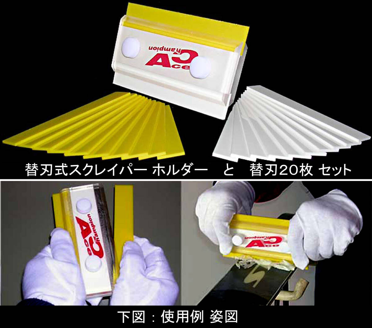 | 商品状態 | 新品 ●スクレーパーホルダー1個 スクレイパー替え板20枚付(白10枚、黄10枚) 替え刃取り替え使用例書き同梱 |