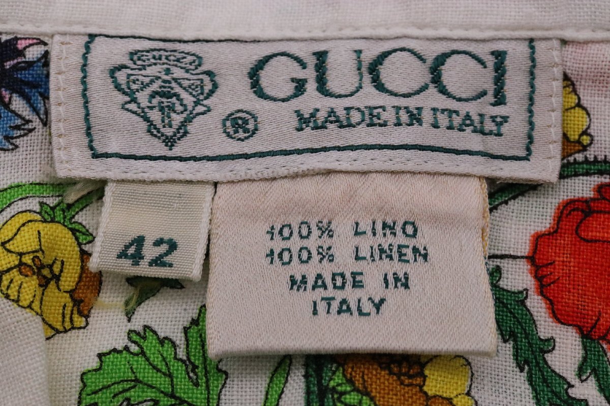 | GUCCI グッチ 花柄 半袖 シャツ フローラ 昆虫 総柄 リネン100% ホワイト サイズ42 レディース イタリア製 | ||