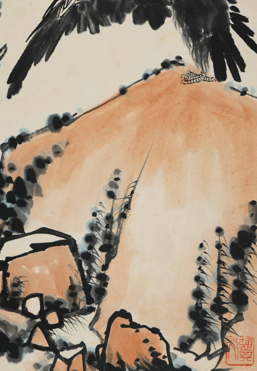 ◆御泓軒◆中国書画 『近時代画家「潘天寿書」紙本「松鷹図」』紙本真作・肉筆保証・掛け軸・書画立軸・中国美術