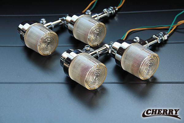 旧車に定番のヨーロピウインカーセットです。 レンズの径は先端部で46ミリ、後方部で50ミリ。 ボディはアルミ製のためサビません。 こちらは個性的なクリアレンズ仕様で完全な透明色ではなく中古加工で少し黄ばんでいます。 線は2本出ているタイプで付属のステーもアルミ製です。 旧車をはじめ幅広い車種によく似合います。 |
