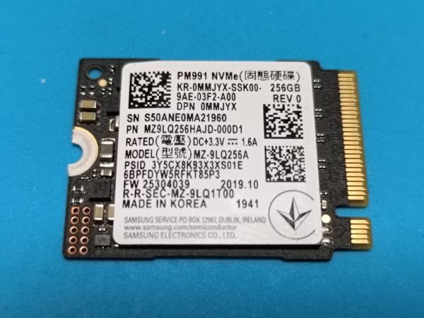| (BIOS確認済み) SSD SAMSUNG MZ-9LQ256A NVMe 256GB | ||||