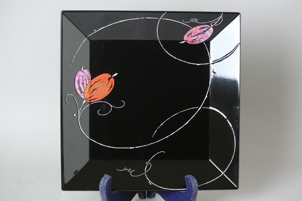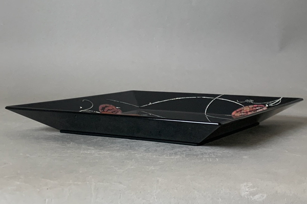 | 【 中野孝一 烏瓜蒔絵 四方盆 共箱・共布・栞付き】 |