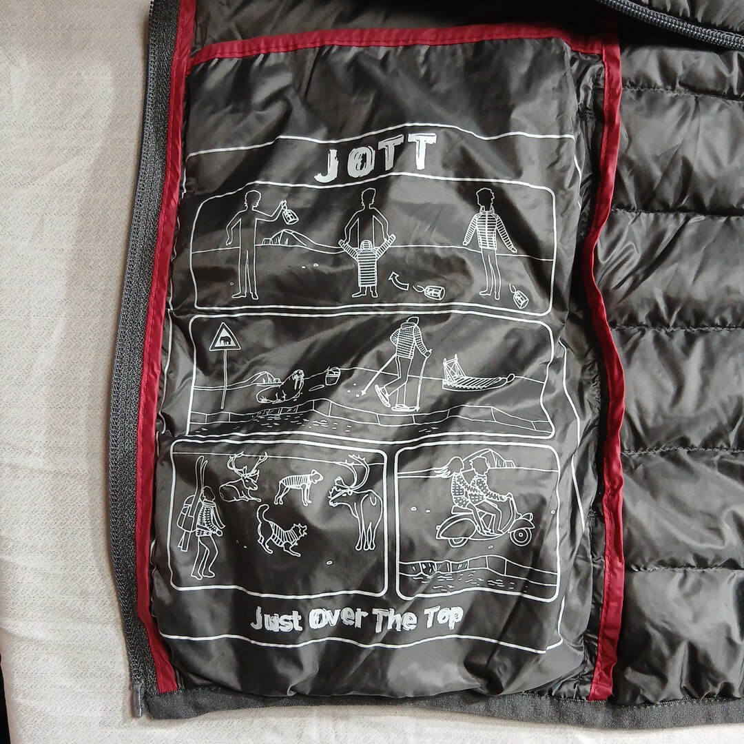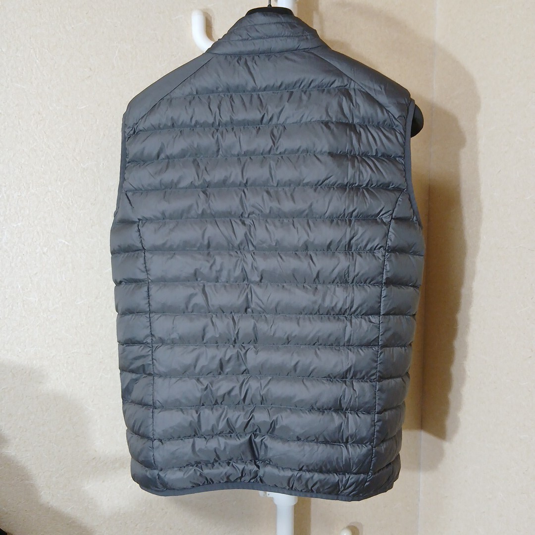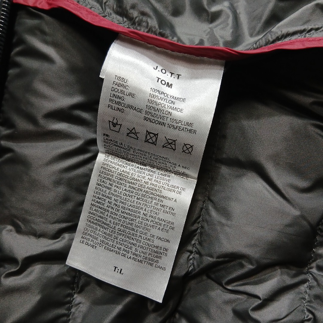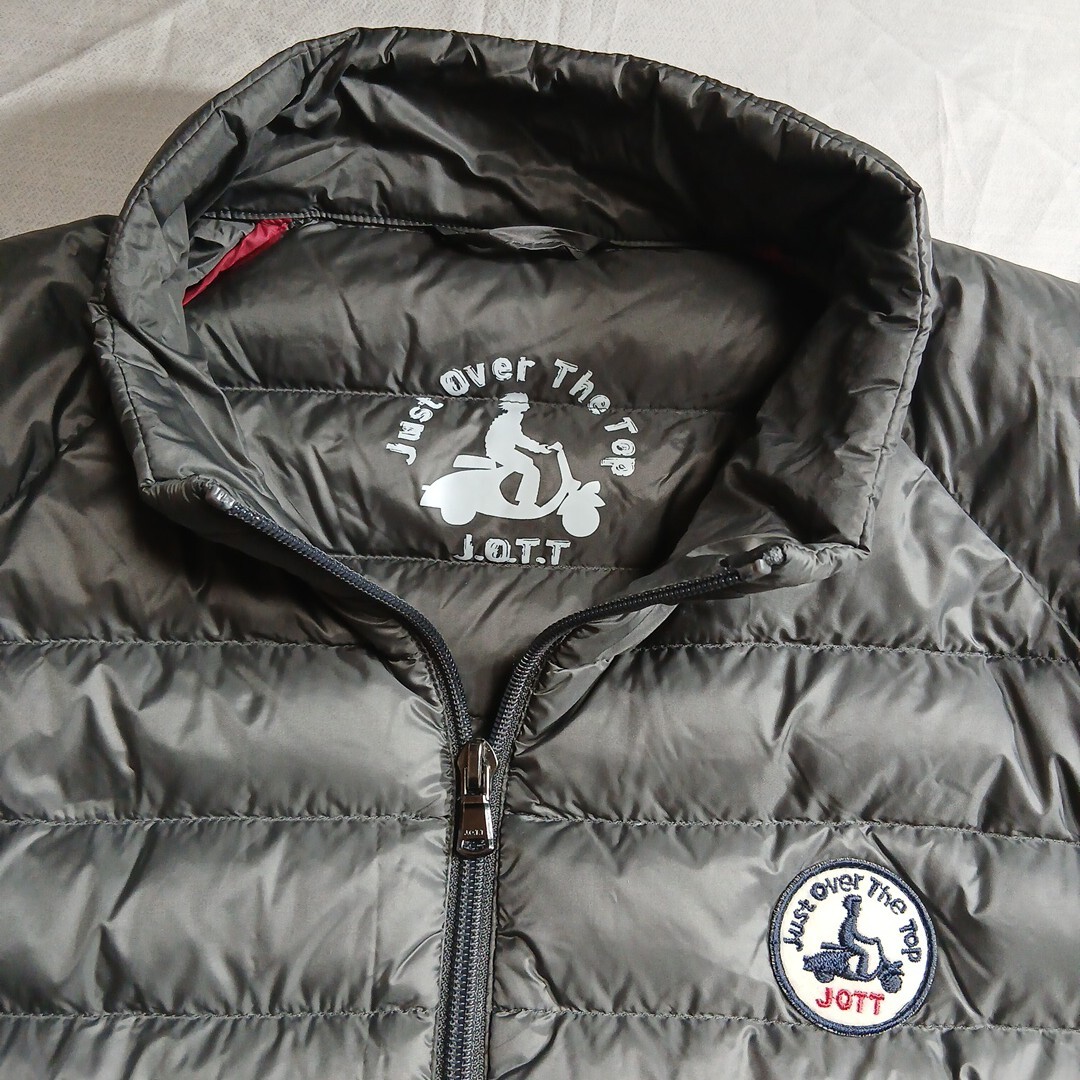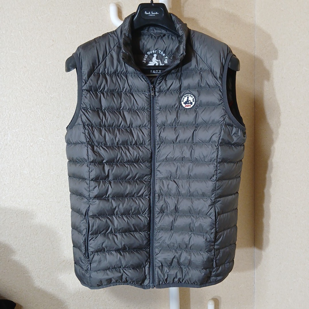 ジョットのダウンベストです。サイズは、実寸でおおよそ肩幅43センチ、身幅54センチ、着丈63センチです。素材は、表地がナイロン100%で、裏地がナイロン100%で、中綿がダウン90%、フェザー10%です。色は、グレーです。多少使用感などございますが特に目立つキズや汚れは無いと思います。l