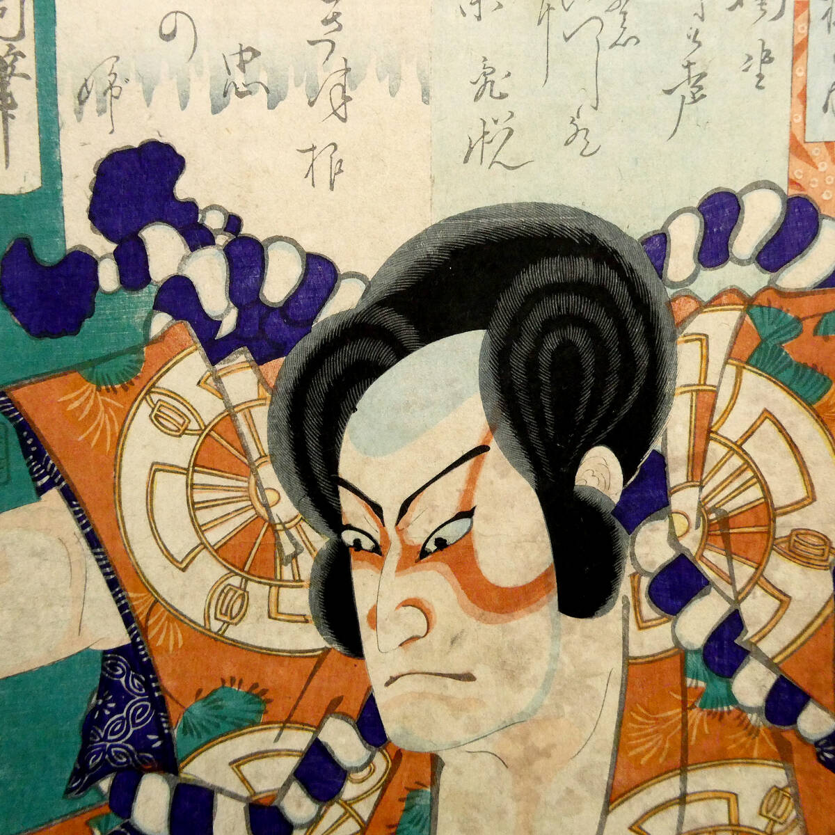 ■ 豊原国周 江戸時代 木版浮世絵 2枚続 義経千本桜 「三十六句撰の内」 横川覚範 きつね忠信 2点一括 ■