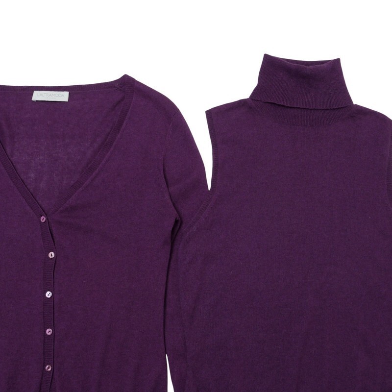 | TJ6516●LALTRAMODA/ラルトラモーダ*シルク カシミア アンサンブル ニット*長袖 カーディガン*タートルネック ノースリーブ*サイズM | |||