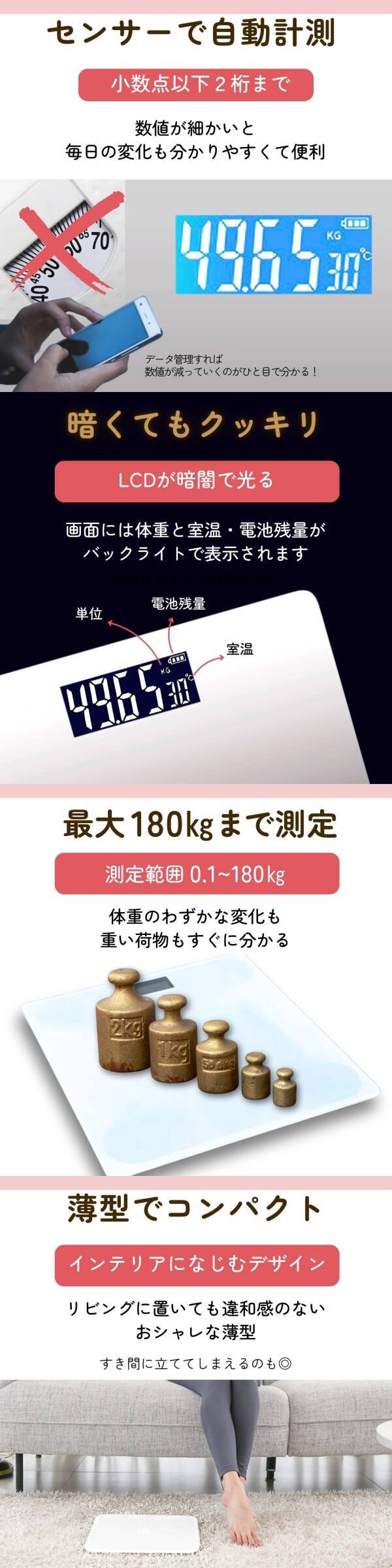 | 体重計 デジタル 薄型 ホワイト シンプル | ||||
