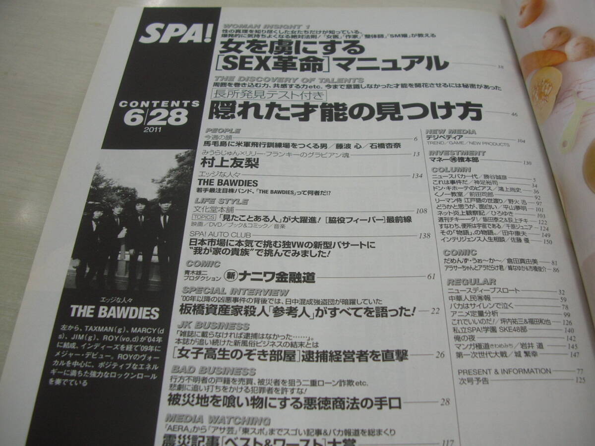 SPA! 週刊スパ 2011年06月28日発行 石橋杏奈 表紙 藤波心 村上友梨・グラビア魂 THE BAWDIES(インタビュー)