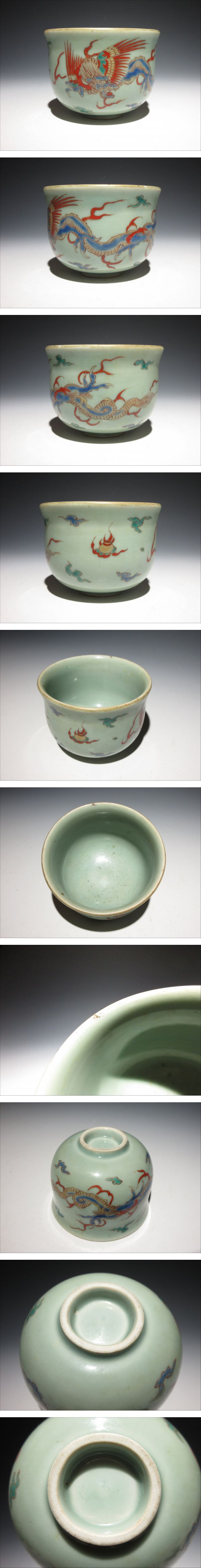 | 商品説明 | 古美術コレクター収蔵品 江戸前期 柿右衛門青磁 龍文猪口 当時の最高の技術と原料で造られた名品です 素晴らしい絵付、造形をしています 青磁の上から龍が鮮やかに描かれています