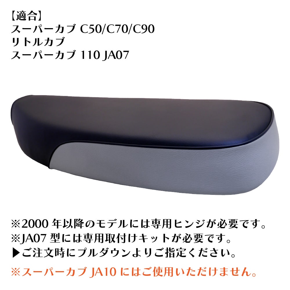 | スーパーカブ 50 /70 /90(注1) リトルカブ(注1) スーパーカブ110 JA07(注2) ※旧カブ、AA04不可。 ※こちらのダブルシートは【スーパーカブ110 JA10】にはお使い頂けません。 (注1) 2000年以降のモデルにお使いいただく場合、純正のヒンジが流用できませんので、下段プルダウンメニューよりシートヒンジを「必要(+550円)」に選択してご注文ください。JA07型の場合は取付キットにヒンジも付属していますので「不要」を選択してください。 (注2) スーパーカブ110【JA07】にお使いいただく場合、【JA07】専用のダブルシート取り付けキットが必要になりますので、上段プルダウンメニューより「JA07専用取付キット※専用ヒンジ付属(+2400円)」をご選択の上ご注文ください。 *こちらのシートは出荷前に取り付け・外観を検品済です。 |