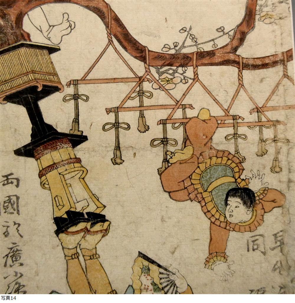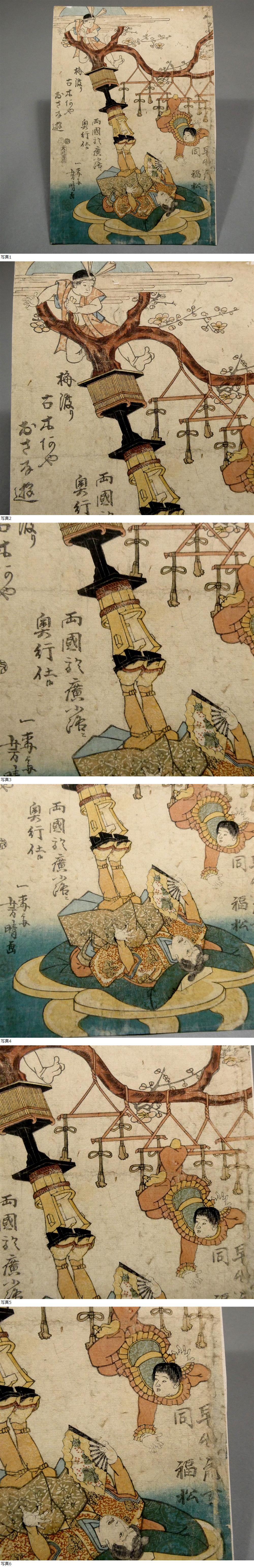 ■ 歌川芳晴(芳春) 江戸時代 木版浮世絵 サーカス 曲芸 軽業 大名人 早竹虎吉の図 「梅渡り古木あやおさな遊」 ■