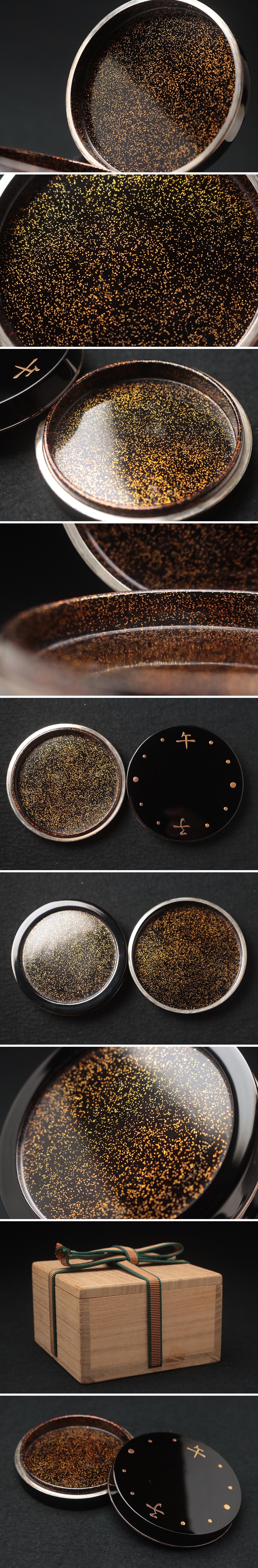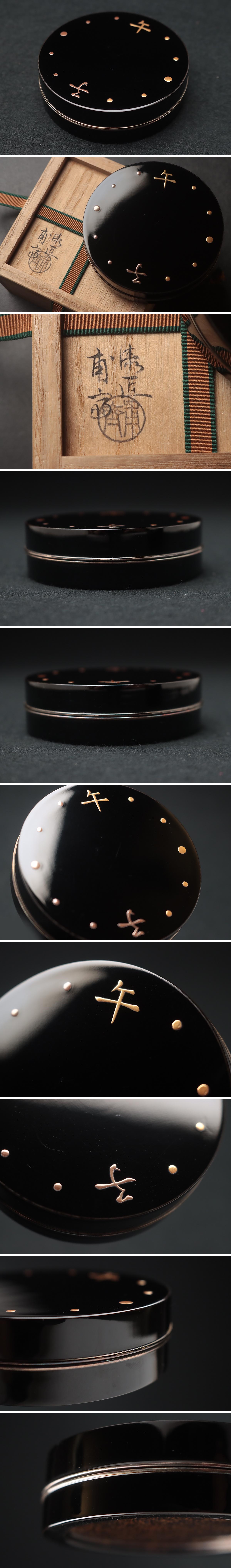 | ◆ 【漆匠 山下甫斎 作】黒漆塗 子午蒔絵 銀縁 香合 内金梨地 共箱附・子午香合 香道具 茶道具 伝統工芸 漆工芸 漆器 ◆