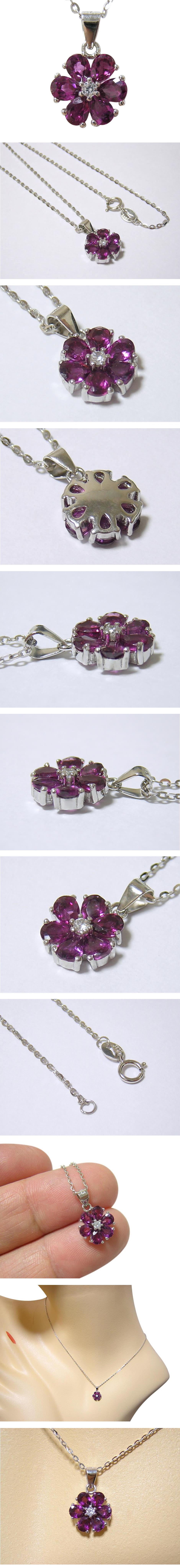 モザンビーク産の天然ロードライトガーネットとキュービックジルコニアを使用したペンダントネックレスです。